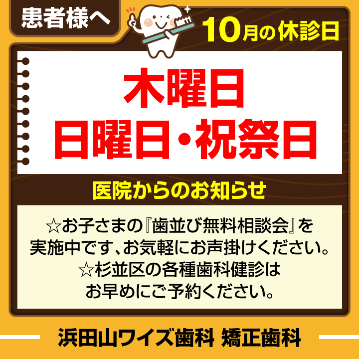 10月休診日情報